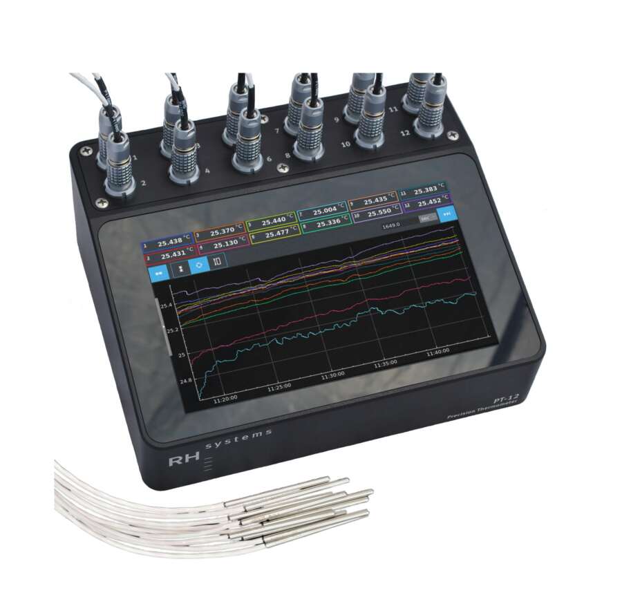 PT12 Precision Thermometer je vysoce přesný měřicí systém určený pro měření teploty pomocí platinových odporových teploměrů (PRT). Přístroj umožňuje současné měření až na 12 kanálech a poskytuje velmi nízkou nejistotu měření díky stabilním interním referenčním rezistorům.